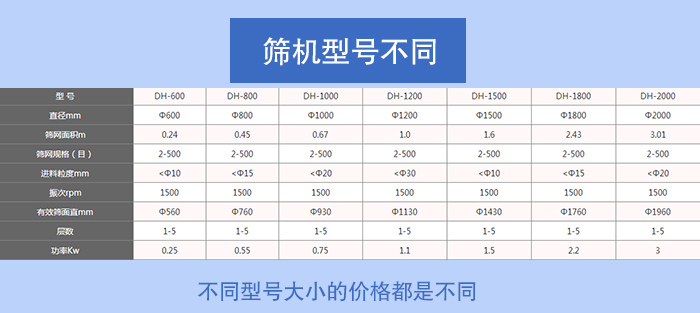 菜籽不銹鋼振動(dòng)篩不同型號(hào)大小的價(jià)格都是不同的,常用的型號(hào)有DH-400、DH-600、DH-800、DH-1000、DH-1200、DH-1500、DH-1800、DH-2000等八種標(biāo)準(zhǔn)型號(hào)。一般來說型號(hào)和振動(dòng)電機(jī)是相互關(guān)聯(lián)的,型號(hào)越大振動(dòng)電機(jī)的功率就越大,在一定時(shí)間內(nèi)能夠篩出的菜籽篩分產(chǎn)量就越多,相應(yīng)的價(jià)格就越貴。