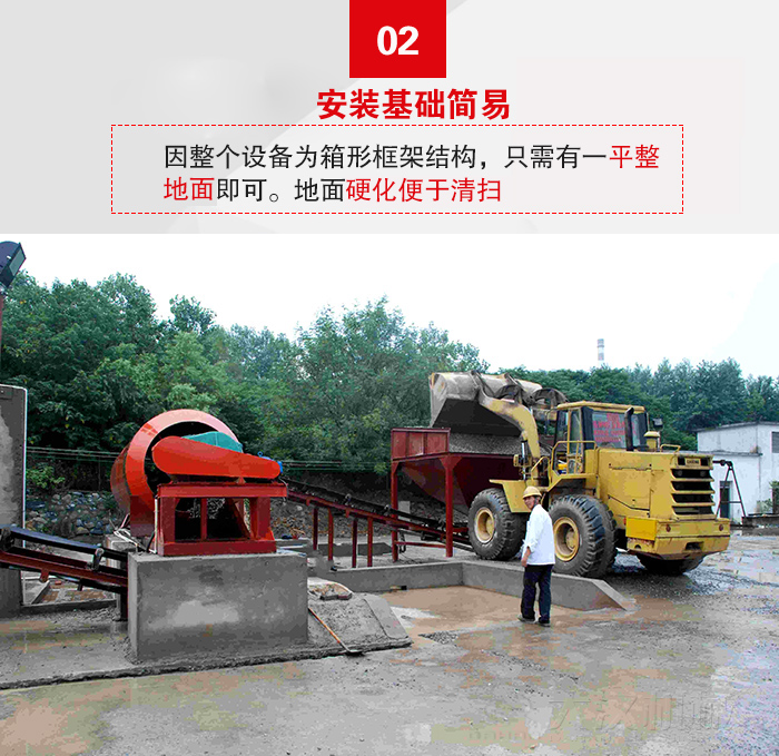 因整個(gè)設(shè)備為箱形框架結(jié)構(gòu),只需有一平整地面即可。地面硬化便于清掃。