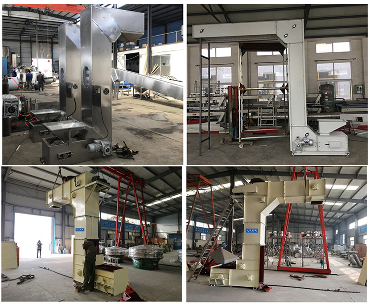 z型斗式提升機(jī)食品廠配合包裝機(jī)輸送,輸送小麥,碎礦石輸送等現(xiàn)場(chǎng)案例展示。