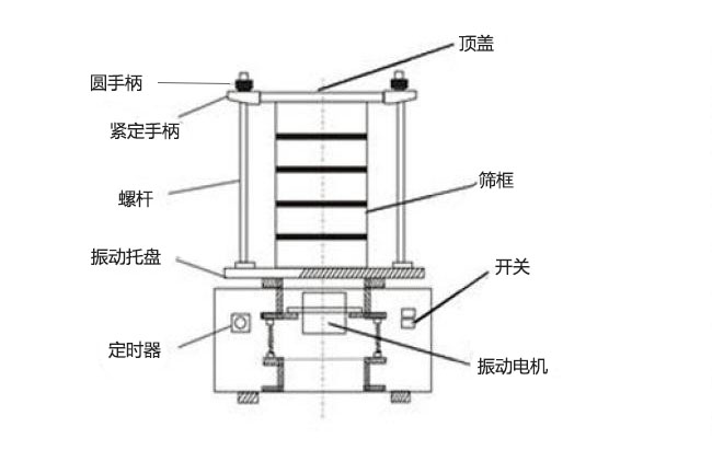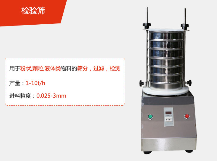 檢驗篩主是以立式振動電機作為整個電機的激振源,通過振動電機帶動上部振動盤振動,再通過振動盤傳導至安放在振動盤上部的篩框上,然后由需要檢測目數(shù)的篩框把小于篩網(wǎng)口孔徑的物料顆粒篩分至下層篩框,如此層層篩選,使每一層檢驗篩內(nèi)只留相同粒度的物料,達到不同粒度的分離并確定此物料的粒度組成,使篩框中的物料能夠達到非常有效的過濾,分級,篩分的目的。