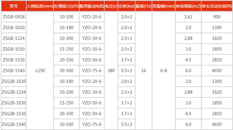 • ZSG礦用振動(dòng)篩技術(shù)參數(shù)