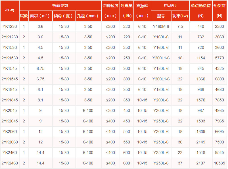 • YA圓振動(dòng)篩技術(shù)參數(shù)