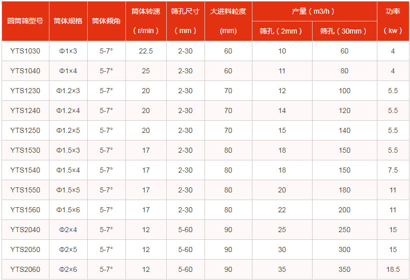 • 圓筒回轉(zhuǎn)篩技術(shù)參數(shù)